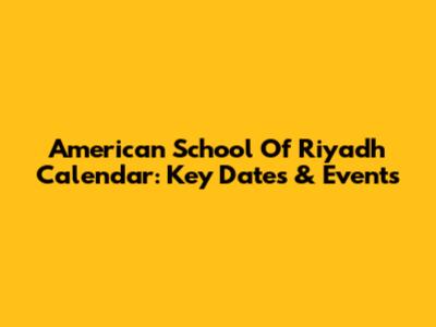 American School Of Riyadh Calendar: Key Dates & Events