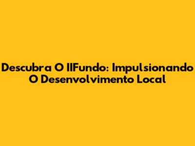 Descubra O IIFundo: Impulsionando O Desenvolvimento Local