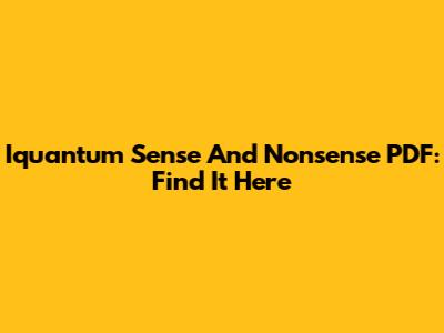 Iquantum Sense And Nonsense PDF: Find It Here