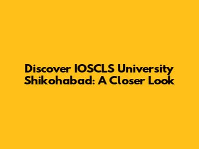 Discover IOSCLS University Shikohabad: A Closer Look