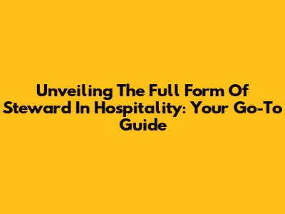 Unveiling The Full Form Of Steward In Hospitality: Your Go-To Guide