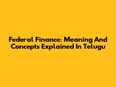 Federal Finance: Meaning And Concepts Explained In Telugu