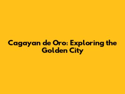 Hey guys! Ever heard of Cagayan de Oro? It's often called the "City of Golden Friendship," and let me tell you, it lives up to the name! This bustling city in the Philippines offers a fantastic mix of adventure, culture, and relaxation. Whether you're a thrill-seeker, a history buff, or just looking for a chill place to hang out, Cagayan de Oro has something for you. So, buckle up and let’s dive into what makes this city so special!