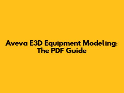 Aveva E3D Equipment Modeling: The PDF Guide