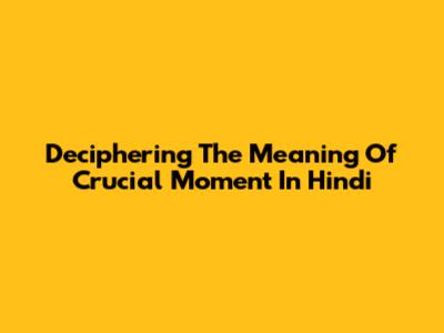 Deciphering The Meaning Of 'Crucial Moment' In Hindi