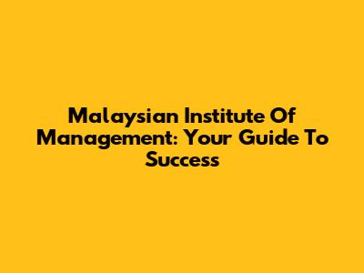 Malaysian Institute Of Management: Your Guide To Success