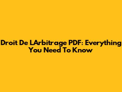 Droit De L'Arbitrage PDF: Everything You Need To Know