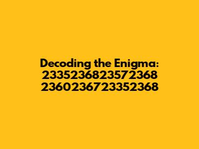 Let's dive into the mysterious world of seemingly random numbers: 2335236823572368 2360236723352368. What could this sequence possibly mean? Is it a secret code, a random string, or perhaps something more profound? In this article, we're going to explore different angles and try to make sense of this numerical puzzle. Buckle up, guys, because we are about to embark on a journey into the unknown! Numbers often carry significance, whether they are dates, codes, or identifiers, so there's a good chance this sequence holds some kind of meaning. Our goal is to unravel any potential layers and bring clarity to this numerical enigma. We'll explore various approaches, from simple pattern recognition to more complex cryptographic interpretations. Let's get started and see what we can uncover together.