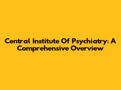 Central Institute Of Psychiatry: A Comprehensive Overview