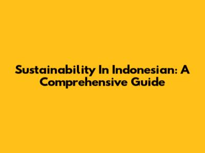 Sustainability In Indonesian: A Comprehensive Guide