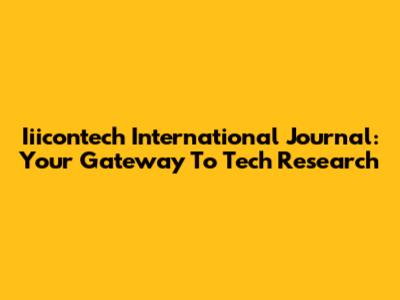 Iiicontech International Journal: Your Gateway To Tech Research