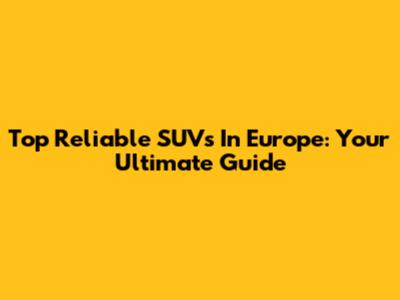 Top Reliable SUVs In Europe: Your Ultimate Guide