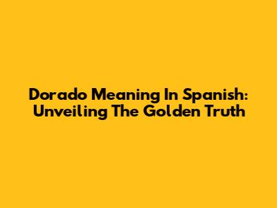 Dorado Meaning In Spanish: Unveiling The Golden Truth