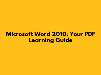 Microsoft Word 2010: Your PDF Learning Guide