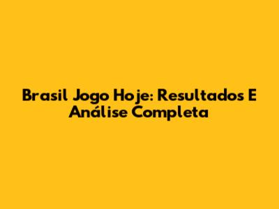 Brasil Jogo Hoje: Resultados E Análise Completa