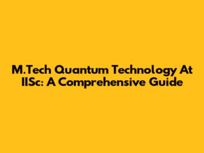 M.Tech Quantum Technology At IISc: A Comprehensive Guide