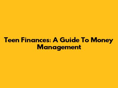 Teen Finances: A Guide To Money Management