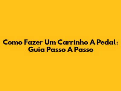 Como Fazer Um Carrinho A Pedal: Guia Passo A Passo