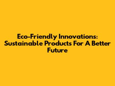 Eco-Friendly Innovations: Sustainable Products For A Better Future