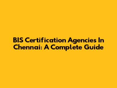 BIS Certification Agencies In Chennai: A Complete Guide