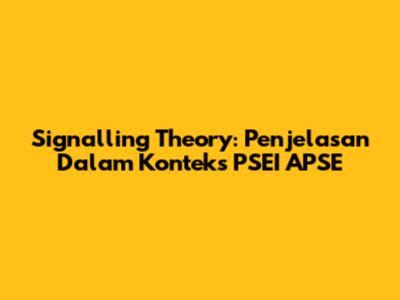 Signalling Theory: Penjelasan Dalam Konteks PSEI APSE