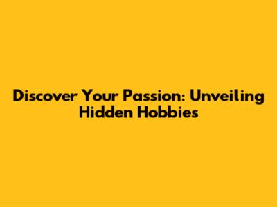 Discover Your Passion: Unveiling Hidden Hobbies
