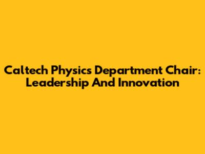 Caltech Physics Department Chair: Leadership And Innovation