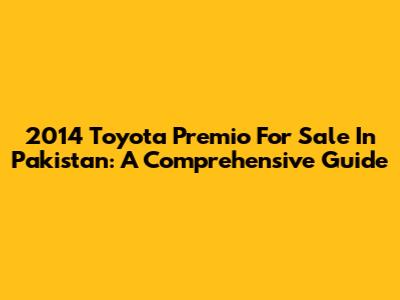2014 Toyota Premio For Sale In Pakistan: A Comprehensive Guide