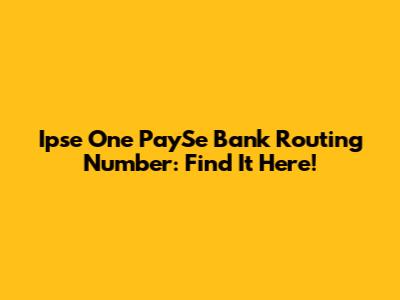 Ipse One PaySe Bank Routing Number: Find It Here!