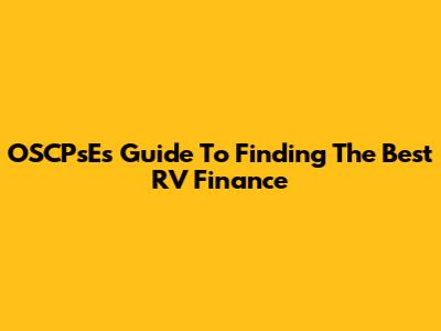 OSCPsE's Guide To Finding The Best RV Finance