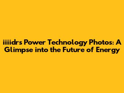 Hey guys! Ever wondered what the future of power technology looks like? Well, buckle up because we're diving deep into the world of iiiidrs Power Technology! In this article, we're going to explore some fascinating photos that give us a sneak peek into their innovative work. We'll cover everything from their cutting-edge research and development to real-world applications of their power solutions. So, let's get started and see what iiiidrs Power Technology is all about!