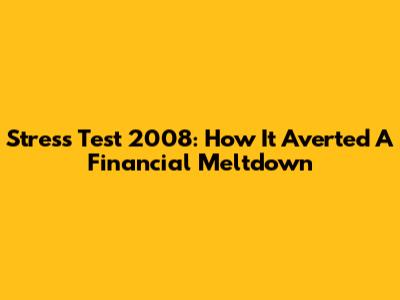 Stress Test 2008: How It Averted A Financial Meltdown