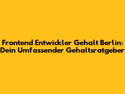 Frontend Entwickler Gehalt Berlin: Dein Umfassender Gehaltsratgeber