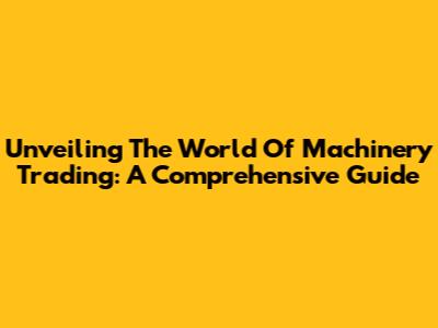 Unveiling The World Of Machinery Trading: A Comprehensive Guide
