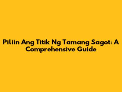 Piliin Ang Titik Ng Tamang Sagot: A Comprehensive Guide