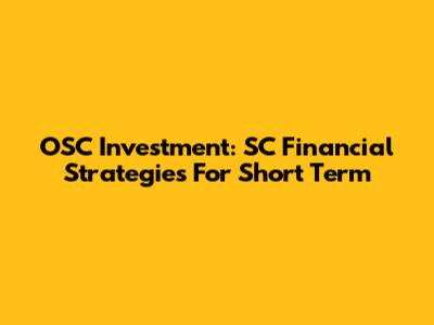 OSC Investment: SC Financial Strategies For Short Term