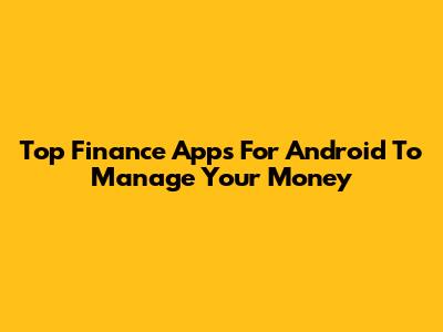 Top Finance Apps For Android To Manage Your Money