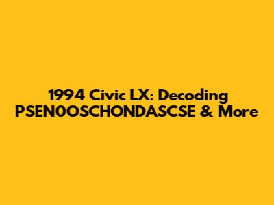1994 Civic LX: Decoding PSEN0OSCHONDASCSE & More