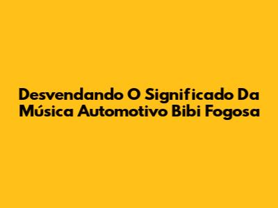 Desvendando O Significado Da Música Automotivo Bibi Fogosa