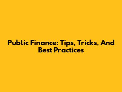 Public Finance: Tips, Tricks, And Best Practices