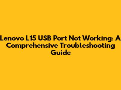 Advanced Troubleshooting: Diving Deeper into Lenovo L15 USB Issues