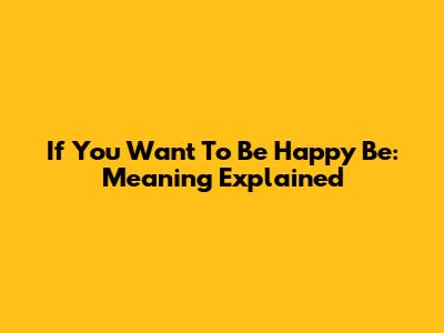 If You Want To Be Happy Be: Meaning Explained