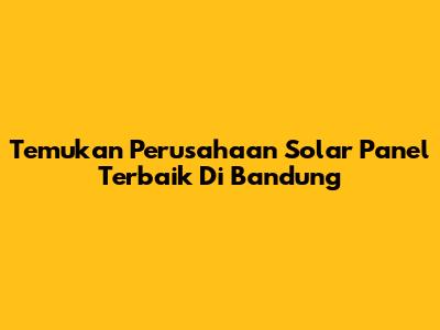 Temukan Perusahaan Solar Panel Terbaik Di Bandung