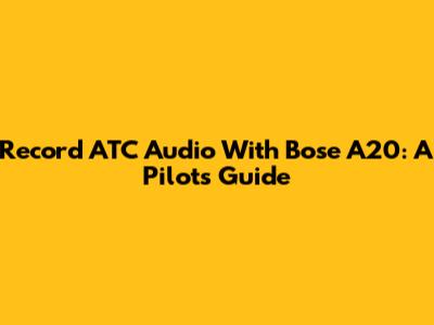 Record ATC Audio With Bose A20: A Pilot's Guide