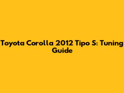 Toyota Corolla 2012 Tipo S: Tuning Guide
