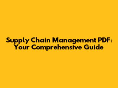 Supply Chain Management PDF: Your Comprehensive Guide