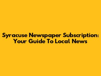 Syracuse Newspaper Subscription: Your Guide To Local News