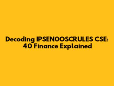 Decoding IPSEN0OSCRULES CSE: 40 Finance Explained