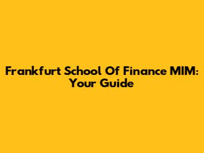 Frankfurt School Of Finance MIM: Your Guide