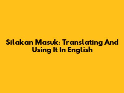 Silakan Masuk: Translating And Using It In English